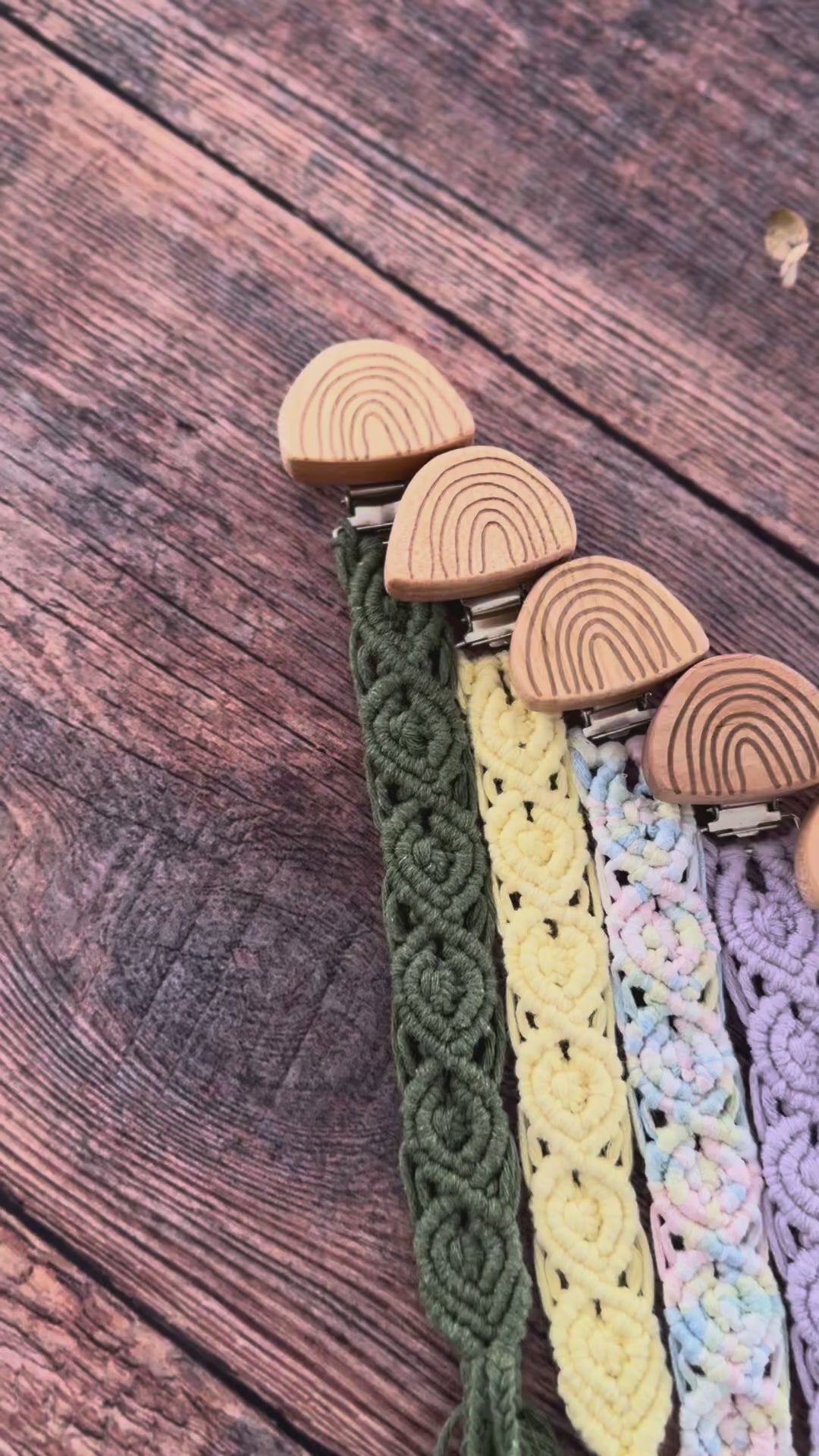 %100 pamuk makrome ipiyle özenle örülmüş, klips kısmı ise dayanıklı akçaağaçtan yapılmıştır.